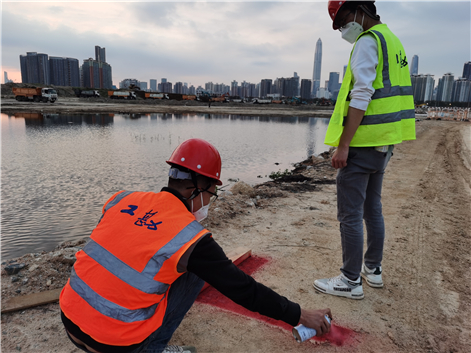 2月底,在香港抗疫形勢最為嚴(yán)峻的時刻,測量團(tuán)隊(duì)第一批趕赴現(xiàn)場。當(dāng)時的施工場地還是一片雜草叢生的荒灘,野豬成群,且時有蟒蛇、鱷魚出沒,野外作業(yè)環(huán)境異常惡劣、兇險。且當(dāng)時場地尚未搭設(shè)臨建,測量人員的住宿被統(tǒng)一安排在市區(qū)酒店,即使冒著被疫情傳染的高風(fēng)險,他們依然選擇逆行而上。