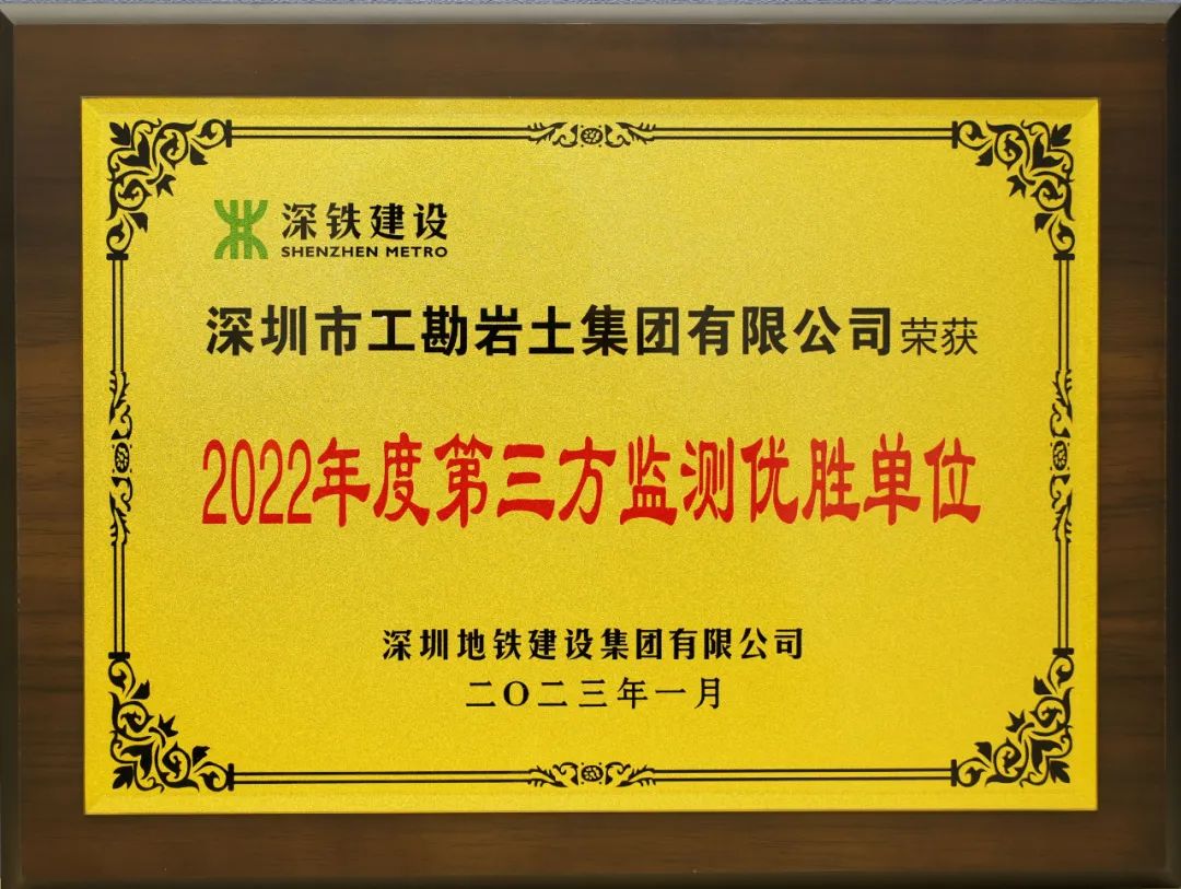 近日,深圳地鐵建設集團有限公司公布了《關(guān)于建設工程施工總承包合同單位、第三方監(jiān)測及控制測量單位2022年度考核的通報》,工勘集團以年度考核排名第一的成績獲評為“2022年度第三方監(jiān)測優(yōu)勝單位”。